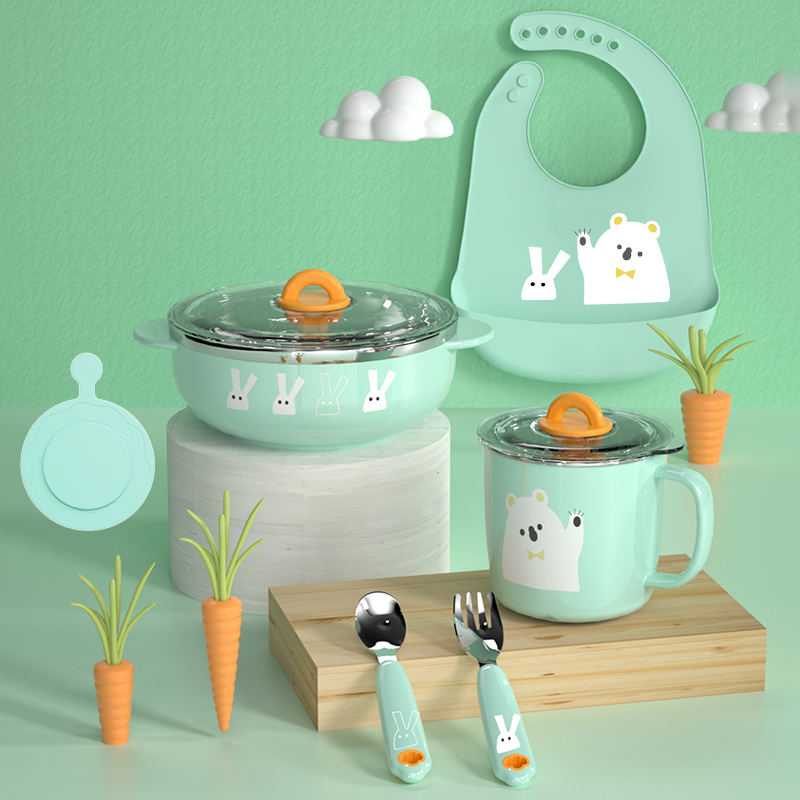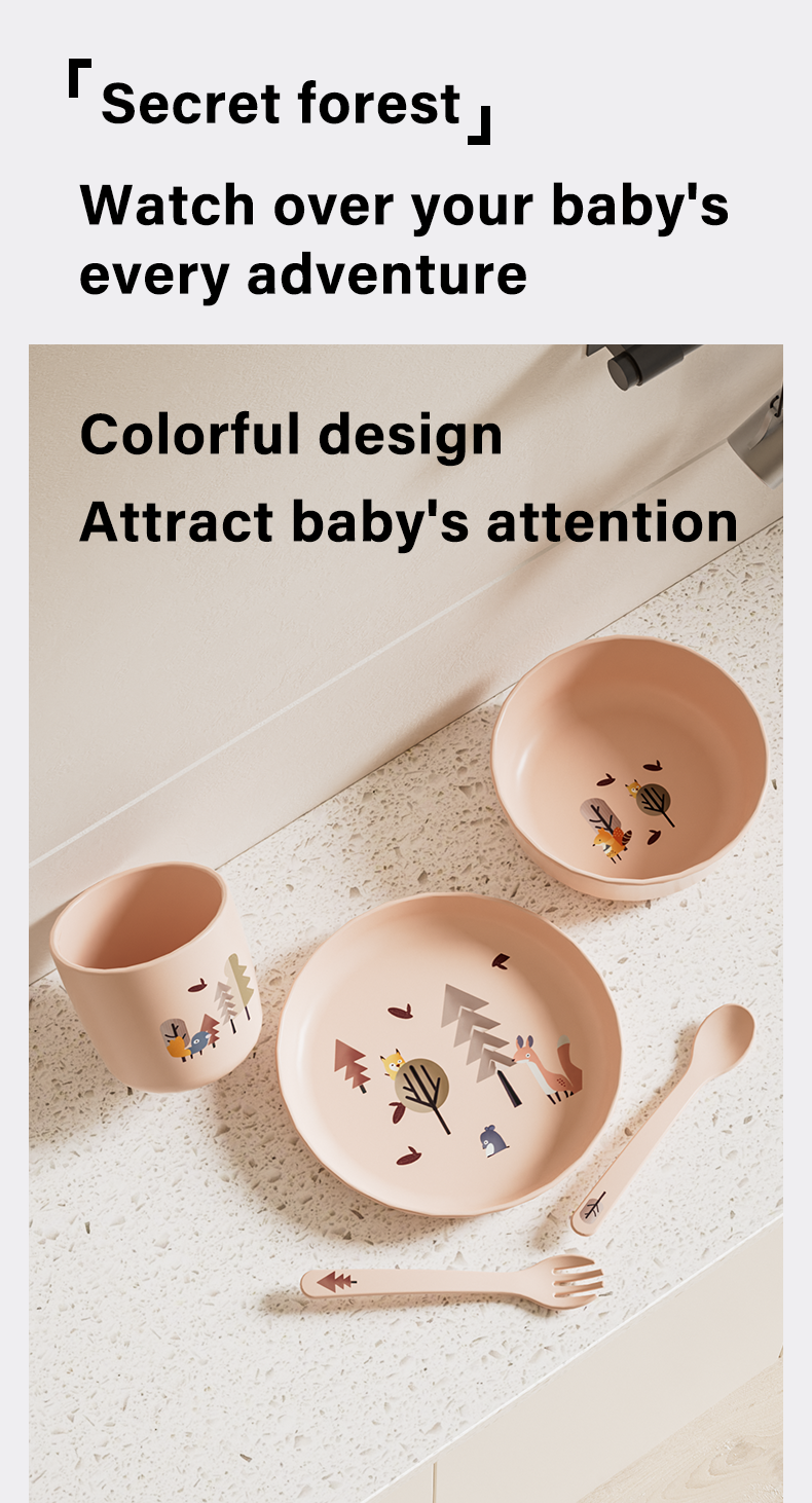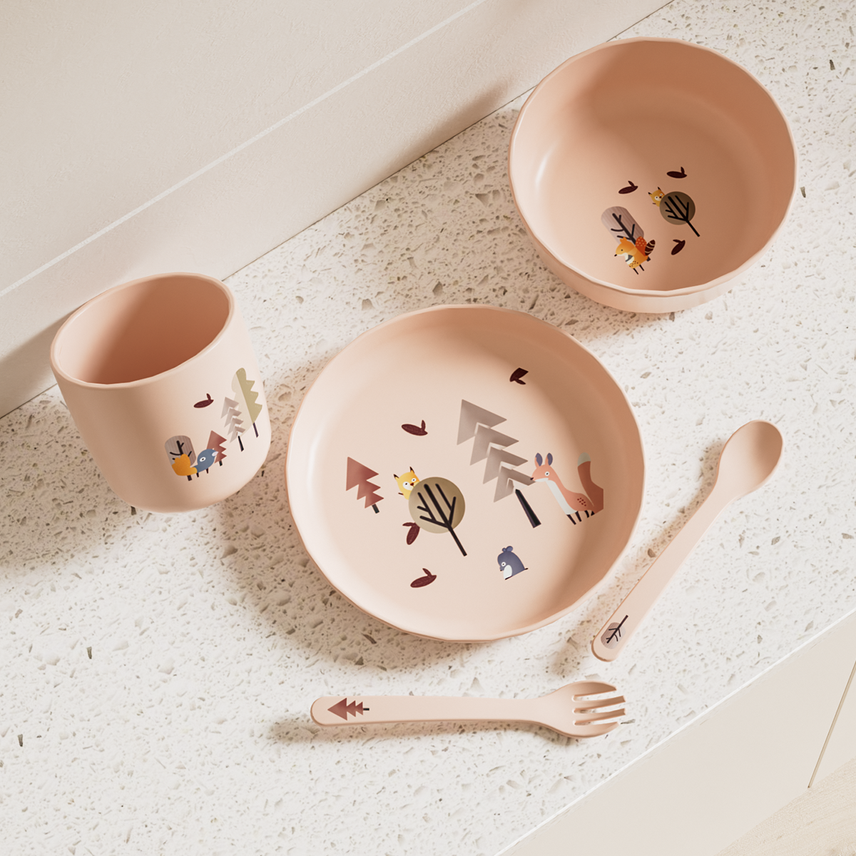 Ergonomic plates, bowls, and utensils designed for self-feeding. Suction bases and soft edges for safer mealtimes.